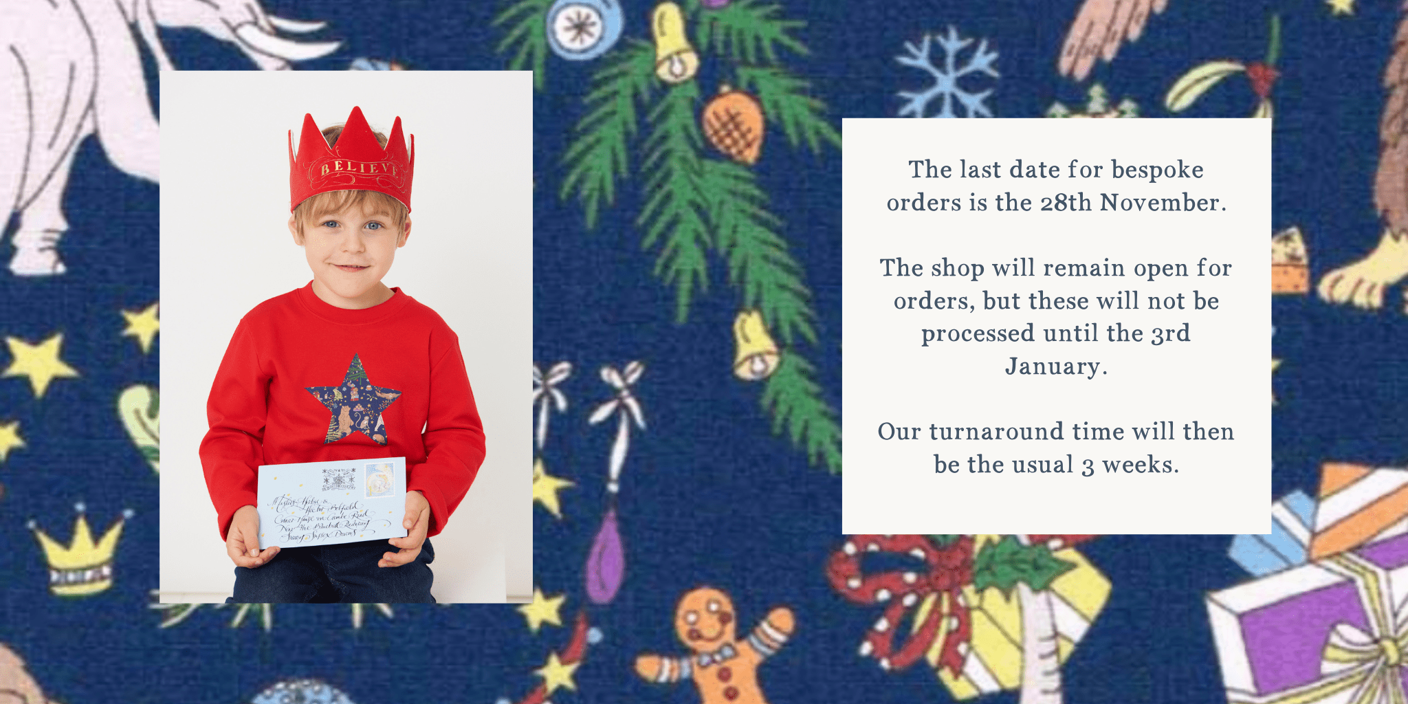 All our personalised items are carefully handmade by our talented team to order. Each piece of fabric is hand cut and sewn onto your chosen garment.